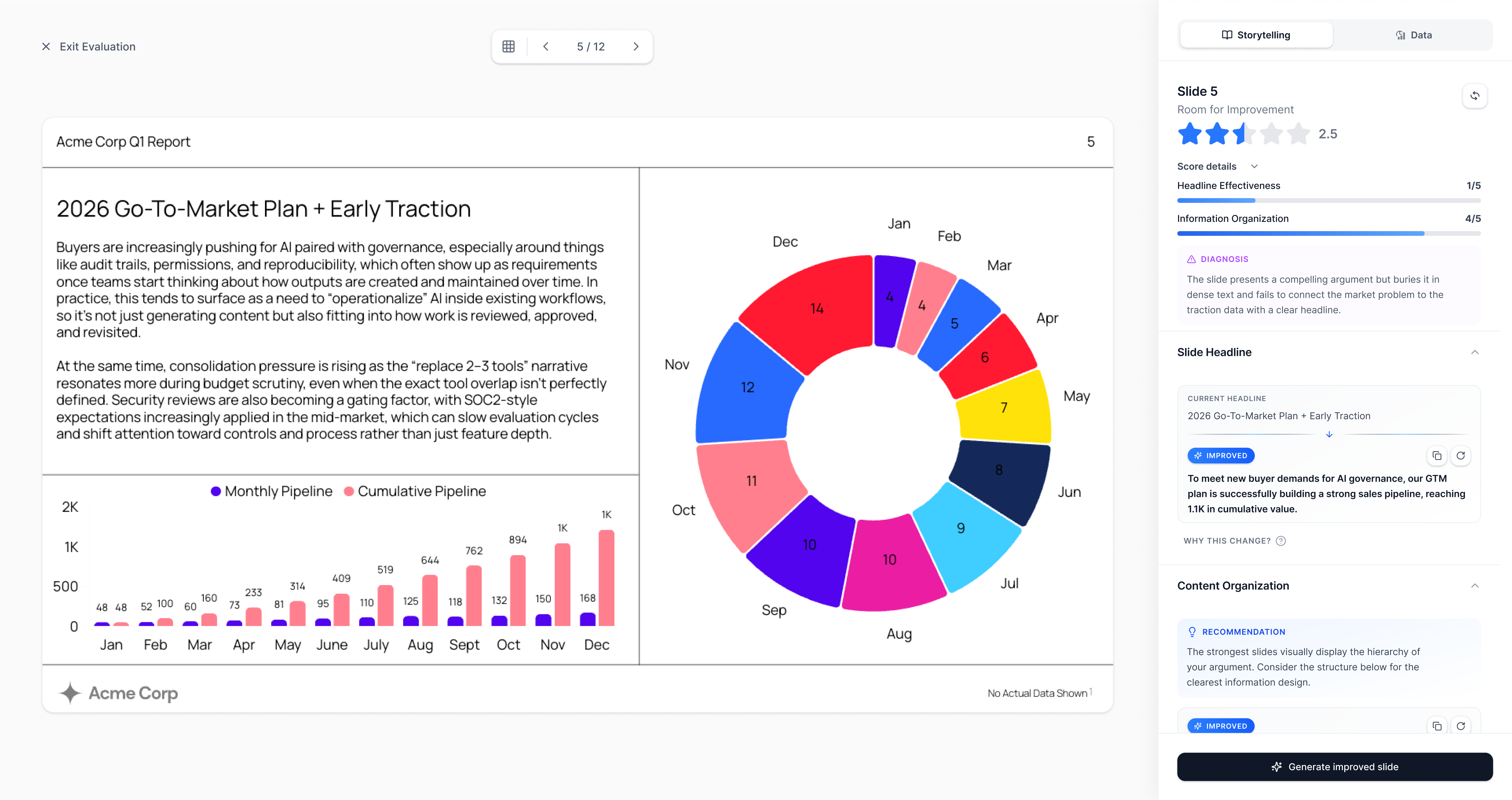 Becise doesn't just tell you what to fix, it shows you, by generating fresh slides and data visualizations.
